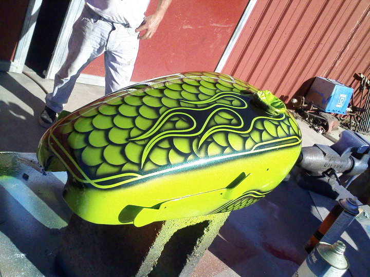Painted my triumph tank lime green, and metallic green highlights, painted the base for the BSA, and a shamrock helmet! im diggin the trump tank..